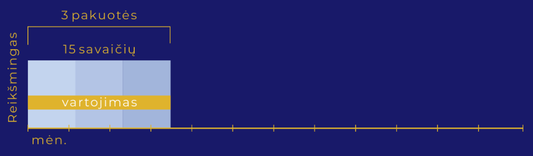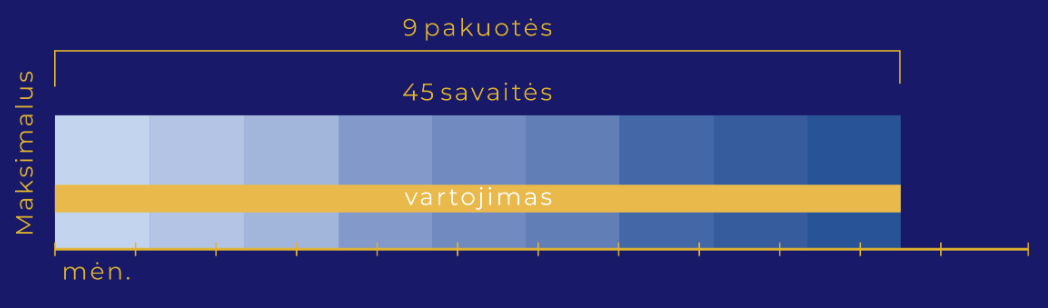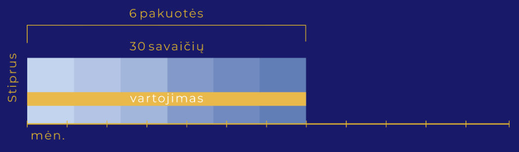 Gerti po vieną kapsulę ir vieną vienadozę talpyklę per dieną po valgio. Vartoti pagal savaitės dienas, nurodytas ant vidinės pakuotės.